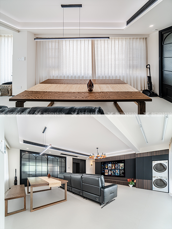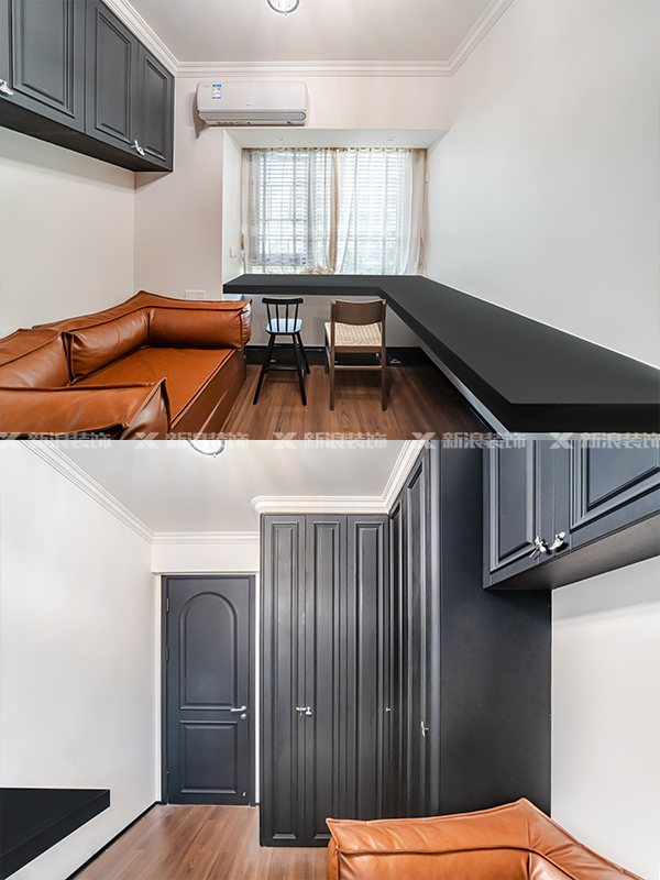 門墻柜一體化:全屋定制柜無縫銜接墻面,黑橡柜體搭配拉手,貴氣不浮夸