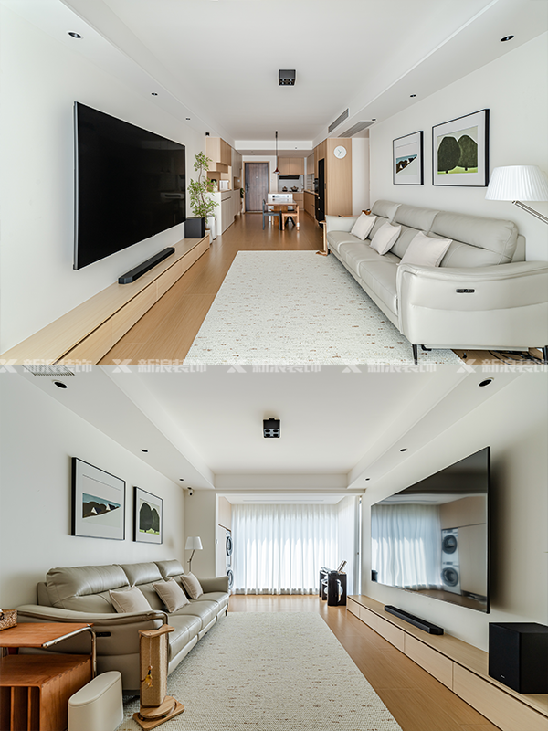 全屋通鋪淺木紋瓷磚 + 奶呼呼墻面