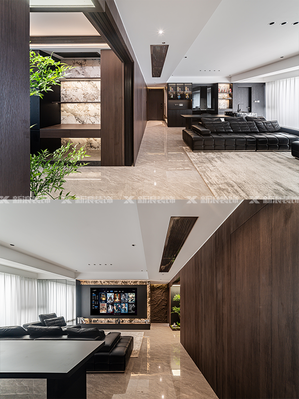 進門精心設計端景,巧妙地串聯起全屋風格,內部U型布局,把空間利用到極致。