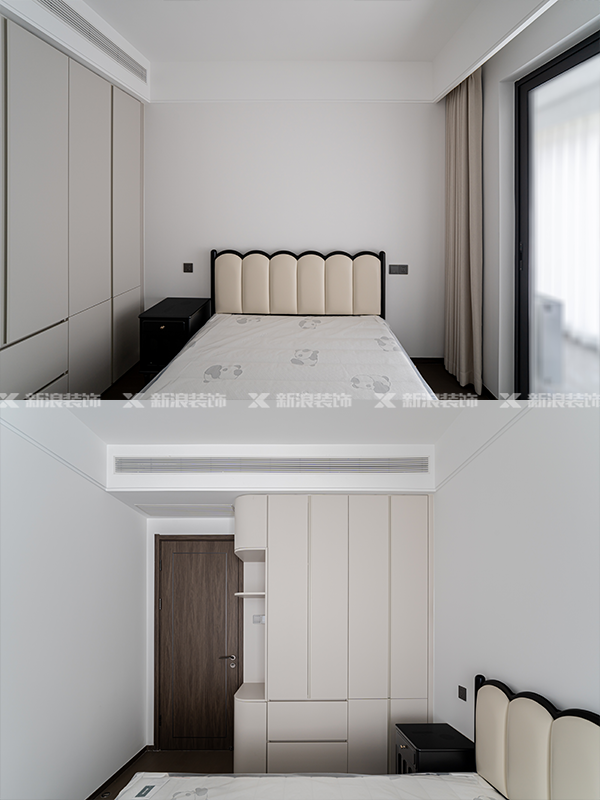 麗爾曼頓的萬象天冠杉木芯板做柜體+奧地利百隆五金,護墻板選同系列歐松板,房門直接定制同款隱形門!顏色統一、材質統一,省了拼接費,視覺還放大2倍
